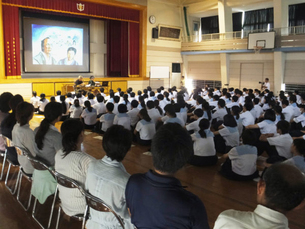 向洋中学校での紙芝居(9月)