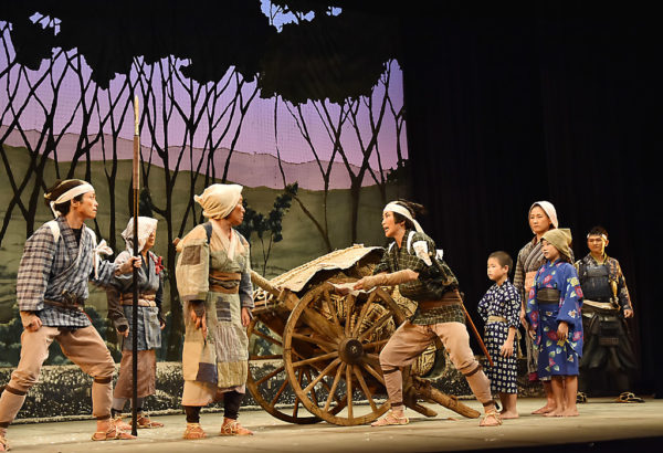 高杉晋作没150年・劇団はぐるま座創立65周年を記念する『動けば雷電の如く――高杉晋作と明治維新革命』下関公演(主催/劇団はぐるま座、協力/明治維新150年下関もりあげ隊、後援/東行庵、功山寺、下関市、下関市教育委員会)が13日、下関市の生涯学習プラザ海のホールでおこなわれた。会場には下関市内各地から小・中・高校生、中小商工業者、労働者、教師、文化関係者、吉田・新地・長府などの維新ゆかりの地の人人をはじめ、県内各地、また広島や大分などから約500人が参観した。