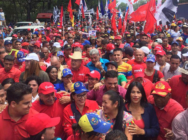 メーデー当日、首都カラカスの中心街は約40万人の労働者の隊列によって埋めつくされた。労働者とともに各地から集まったボリバル民兵も行進した。