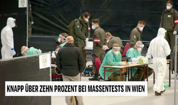 話は検査に戻る。コロナ大規模検査とは、既にいる無症状の隠れ陽性者を見つけ出し隔離、感染拡大を極力抑え込むための対策である。全国各地のホールや体育館に検査所を設置し、各所にオーストリア軍の兵隊が検査員として派遣された。