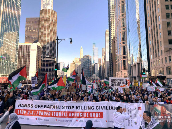 パレスチナと連帯する大規模なデモ行進が埋め尽くしたシカゴの街路(2日)