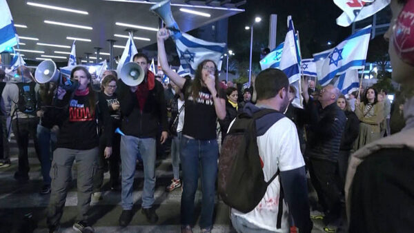 数千人のイスラエル人がテルアビブでネタニヤフ首相に反対して行進した(2日)