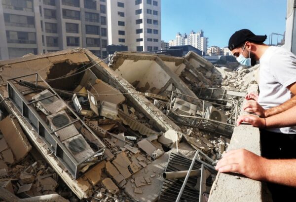 イスラエルの攻撃によって破壊されたレバノンの首都ベイルートの住宅街(2日)