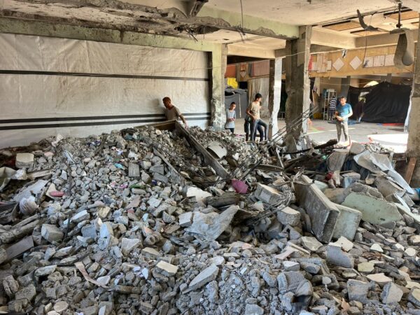 空爆されたガザ地区の小学校(避難所)では、支援活動にあたっていたJVC関係者2人も亡くなった(2024年10月、JVC提供)