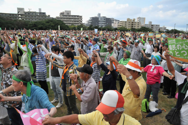 辺野古基地阻止を誓った知事選での県民集会(昨年9月22日、那覇市)