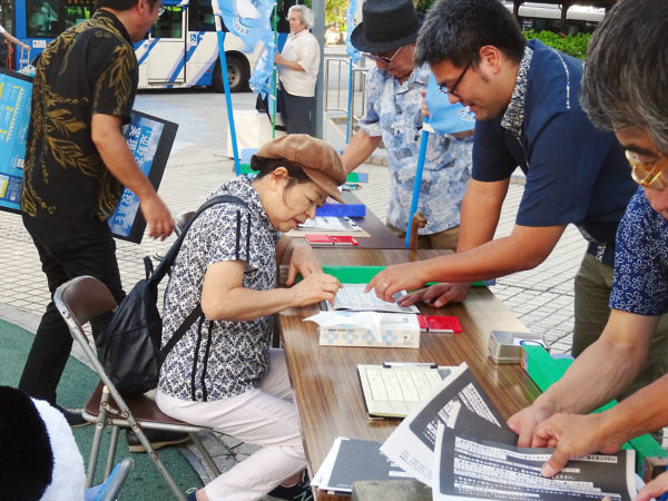 県民投票請求署名(昨年7月、県庁前)