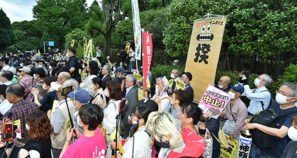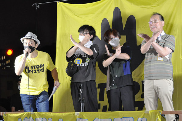 インボイス制度を考えるフリーランスの会(通称「STOP!インボイス」)が呼びかけて14日午後6時から、「増税もう無理 STOP!インボイス全国一揆」を開催した。政府が10月導入を既定路線とするなか、東京・国会正門前(約1500人・主催者発表)と全国約20カ所(約1000人・同)で、インボイス制度の導入の延期・中止を求めて声を上げた。東京会場ではアニメや声優、映画業界、軽貨物の運転手、ウーバーイーツ配達員や建設業界、弁護士、税理士など多彩な業界の人々がゲストスピーカーとしてマイクを握り、インボイス制度は大増税にほかならず、日本の経済や各分野の産業を壊滅させかねない問題であることを各業界の実態から訴えた。