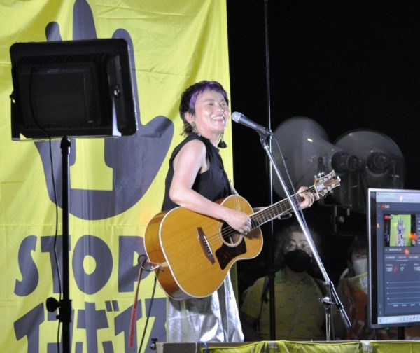 ミュージシャンの和(いずみ)氏も、「日本は中小企業が支えている。そして音楽、映画、声優たち、みなさんの心に潤いを与えるような人たちが仕事を辞めなければならないのは由々しき事態だと思っている。政治などを勉強したわけではないので、声を上げるなど大それたことではないかと思っていたが、思ったことをいうのは大事だ」とのべ、歌で会場を盛り上げた。