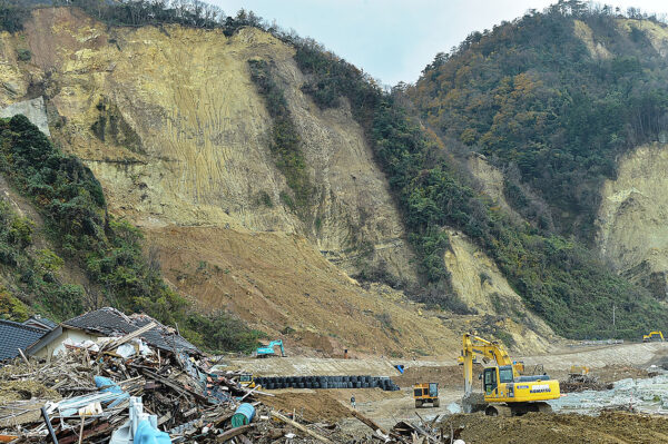 ようやく土砂に埋まった道路が啓開され、車が走れるようになったが、道の脇に積み上げられた土砂は高さ3㍍の巨大な壁になっていた。地震では被害がなかった家も土砂が流れ込み、「もうここでは住めない…」と出て行った住民も少なくない。