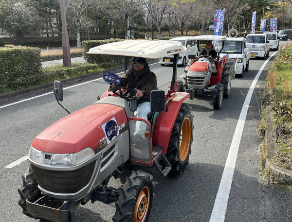 山口市でおこなわれた「令和の百姓一揆」トラクターデモ(3月30日)