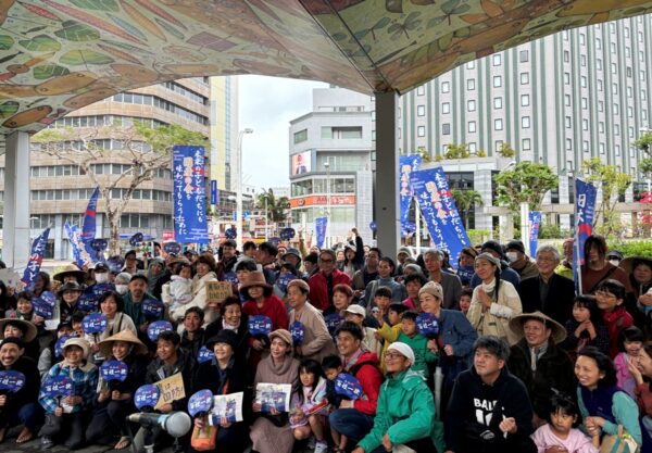 沖縄県那覇市でおこなわれた「うちな~はるさ~一揆」(3月30日、沖縄県庁前広場)