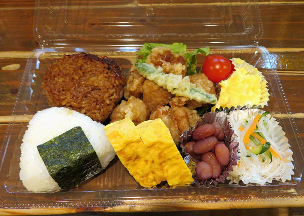前日までの予約でオードブルにも対応。予算や内容は相談次第。「おかずだけで1500円分」とか「おにぎりだけ○○個」などの個別の注文も受け付けている。