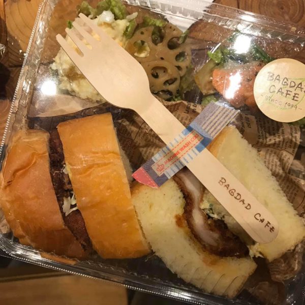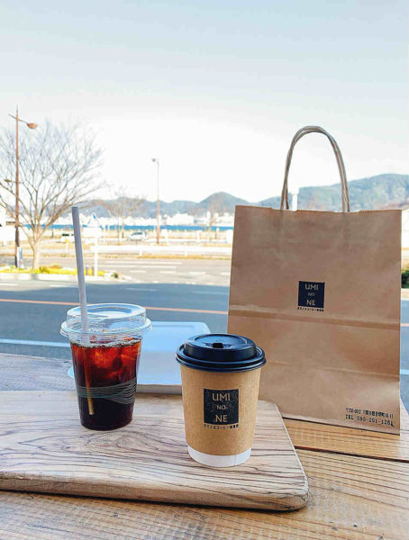 ランチメニューが持ち帰れる。値段は税込500円。ランチの時間に来店して注文してもいいし、電話で注文しておけばすぐに渡せる。その他、ふぐフライ定食(800円)、牛すじ肉のカレーライス(700円、プラス100円でカツをトッピングできる)、ハヤシライス(700円)エビピラフ(700円)やナポリタン(700円)、焼きそば・焼きうどん(各600円)など多数ある。コーヒーをはじめ飲み物もテイクアウト可能だ。