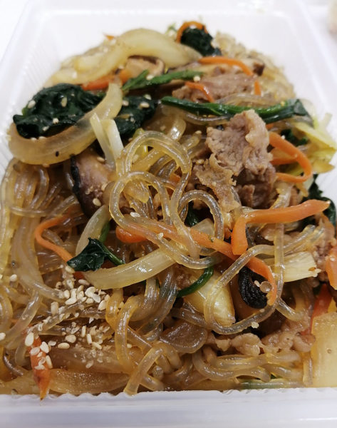 昼(午前11時30分~午後2時まで)はランチメニューが人気だ。石焼きビビンパ、ビビンパ、豚肉ピリ辛炒め、プルコギ丼、スンドゥブチゲはすべて620円(税込)、キムチチゲ、ビビン麺、冷麺が650円(同)。一番人気は何といっても石焼きビビンパ。ランチメニューには新鮮な野菜を使ったサラダが無料で付く(持ち帰り用も)。店にはほかに17種類の一品料理がある。店主のおすすめは韓国風春雨炒め・チャプチェ(1000円税込)。韓国の家庭料理で、日本の糸こんにゃくを思わせる太めの春雨に野菜や肉も入ったやさしい味わいだ。