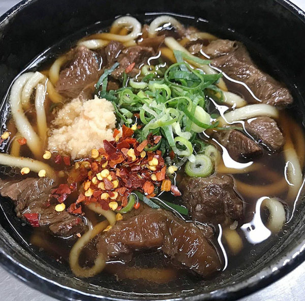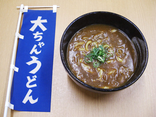 長府トンネル手前の国道2号線沿いに店を構えて6月で3年目を迎える大ちゃんうどん。小倉名物の牛ほほ肉のブロックが入った肉肉うどんを提供しているのは下関市では同店だけだ。口に入れるととろける牛のほほ肉をたっぷり乗せ、しょうがと唐辛子を入れて食べるのが一般的だ。特製のカレーうどんも人気メニューの一つ。