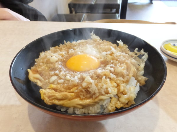 うどん・そばのメニューは、肉天(1000円)、山かけ(850円)、肉とじ(750円)、肉南蛮(700円)、おかめ(700円)など計21種。店主のおすすめは、かつ丼、天婦羅うどん、ざるそばのほか、天かすの入ったたぬき丼、豚肉の焼肉風のスタミナ丼。