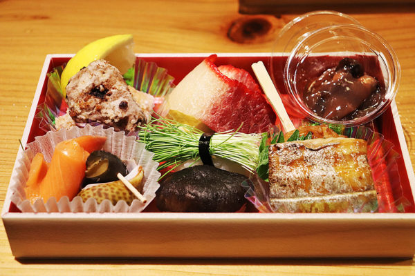 店長おすすめは、国産黒毛和牛の肉を使った和牛ステーキ弁当(1980円+税)、国産ウナギ弁当(2300円+税)。そのほかオードブル(5000円+税)、お刺身盛り合わせ(5000円+税、1万円+税)も受け付ける。お刺身盛り合わせは食べたい魚の要望にできるだけ対応するという。