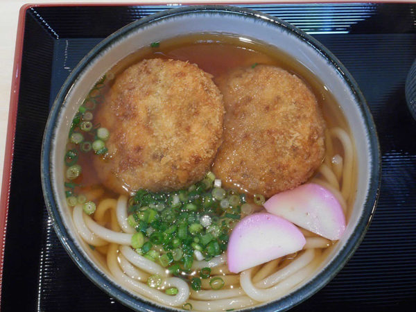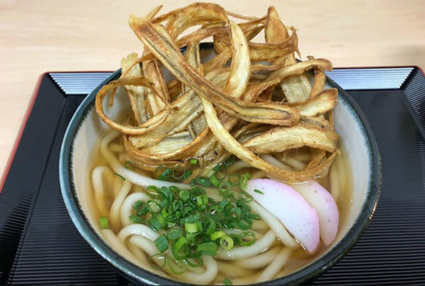 そば・うどんメニューは19種類。かけ(350円)をはじめ、きつね(450円)、たぬき(450円)、天婦羅(600円)、肉南ばん(550円)、かしわカレー(550円)、田舎(600円)、あんかけ(450円)、山かけ(750円)など。