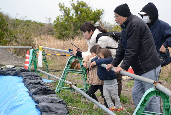 潜水調査を見守る市民たち(1日、宇部市床波)
