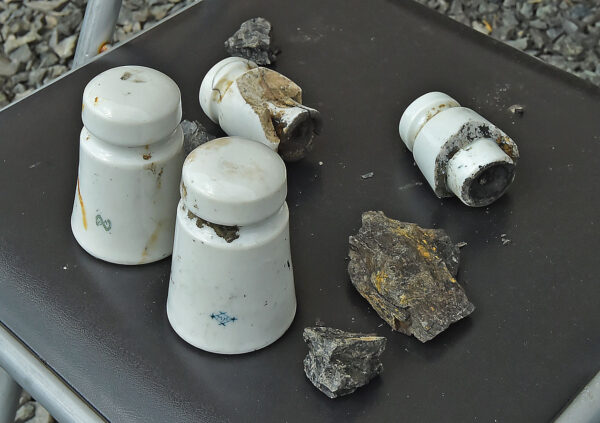 日韓3人のダイバーは2日間、坑口からの潜水調査をおこなった。木材で塞がれている本坑道の265㍍付近から、側道に抜ける道の調査も含め、遺骨がある可能性が高いと見られる最深の330㍍付近に近づくための動線を探った。その過程で、当時坑道の配線に使われていたと見られる絶縁体の碍子(がいし)や石炭を持ち帰った。