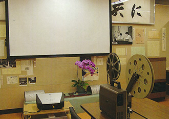 映像を大きく映し出すプロジェクター、16ミリ映写機、大型スピーカーを設置。