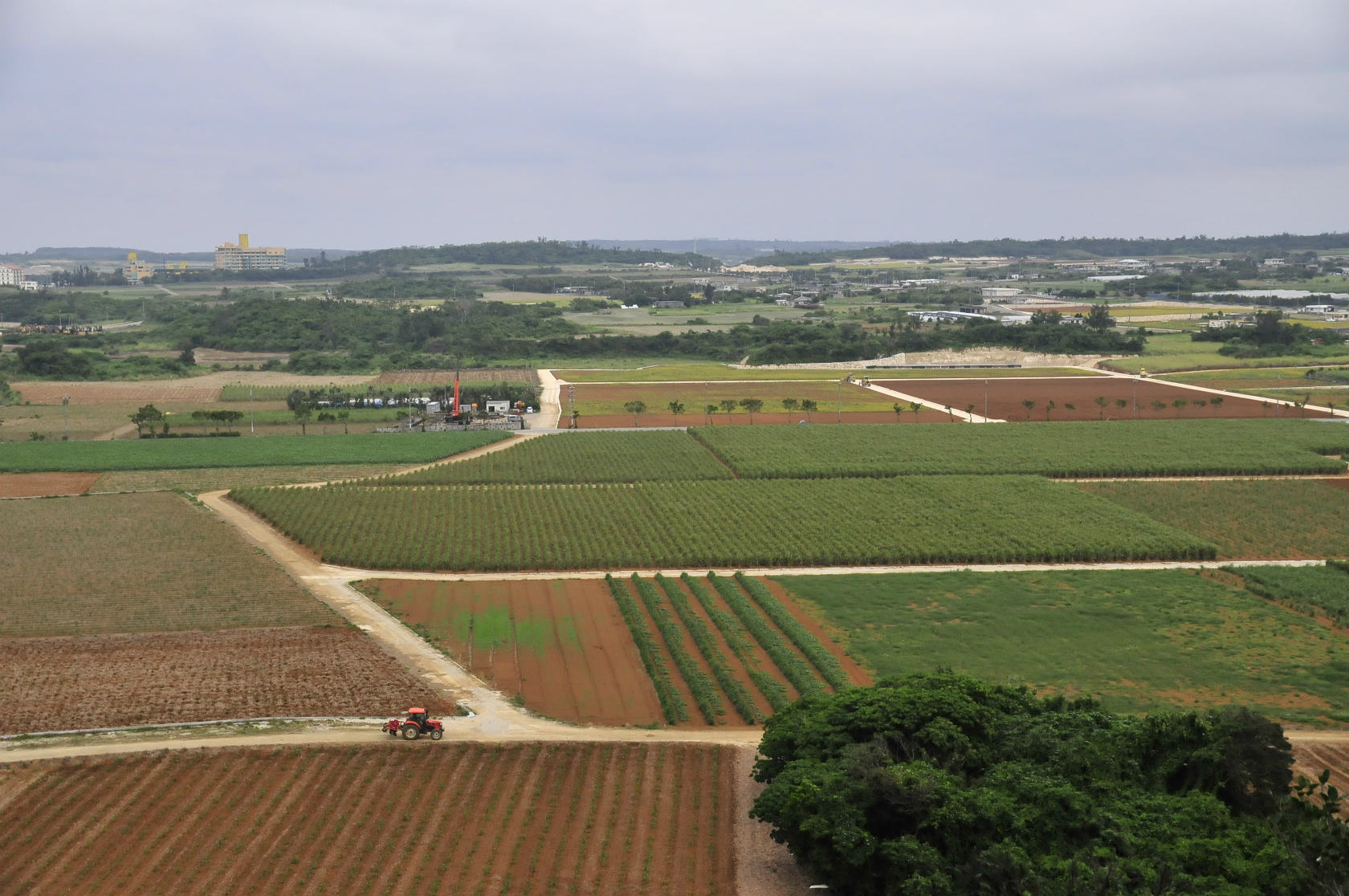 宮古島の中部に広がる田園地帯。広い耕作地を持つ宮古島の農業生産高は県内の市町村でトップだ。