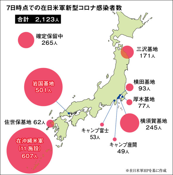 もう一つは2013年に結んだとり決めで「基地内や周辺地域で感染症患者が見つかった場合は、米側の医療機関と日本の保健所のあいだで相互に可能な限り早期に通報する」という覚書だ。だがこれも出入国時の検査すらやっていない米軍基地が、早期に発見し通報することなどあり得ない。日本国民には出入国時の検査や隔離が義務付けられるが、米軍基地を経由すれば検査も隔離もなく自由に行き来できるという二重基準が横行していたことが暴露されている。
