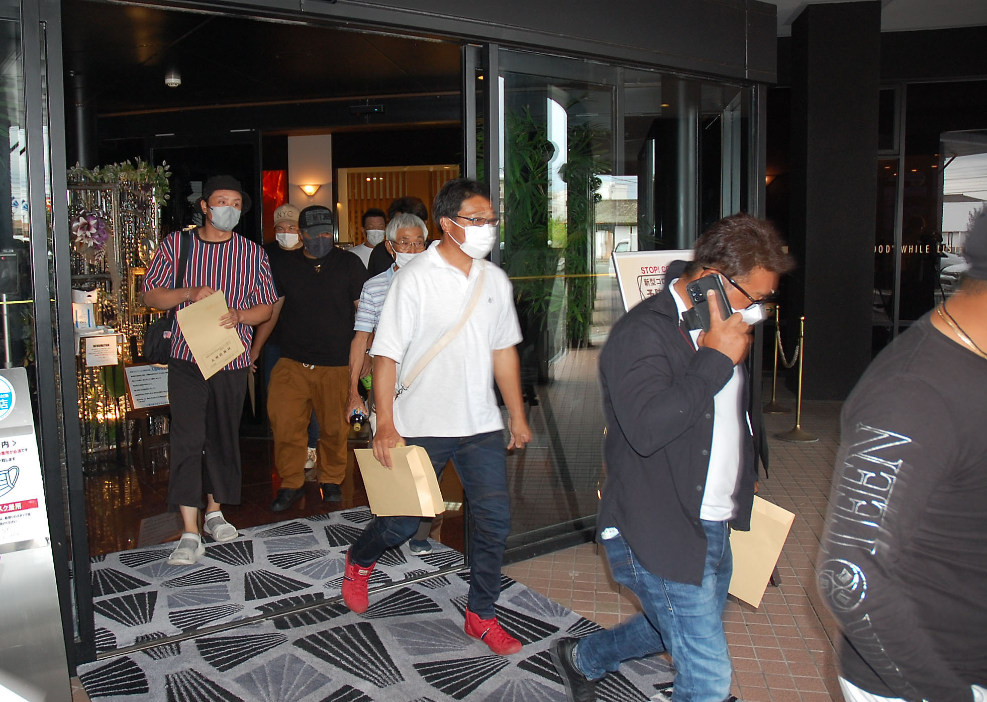 説明会会場を出る南川副支所の組合員たち(9月1日、佐賀県)