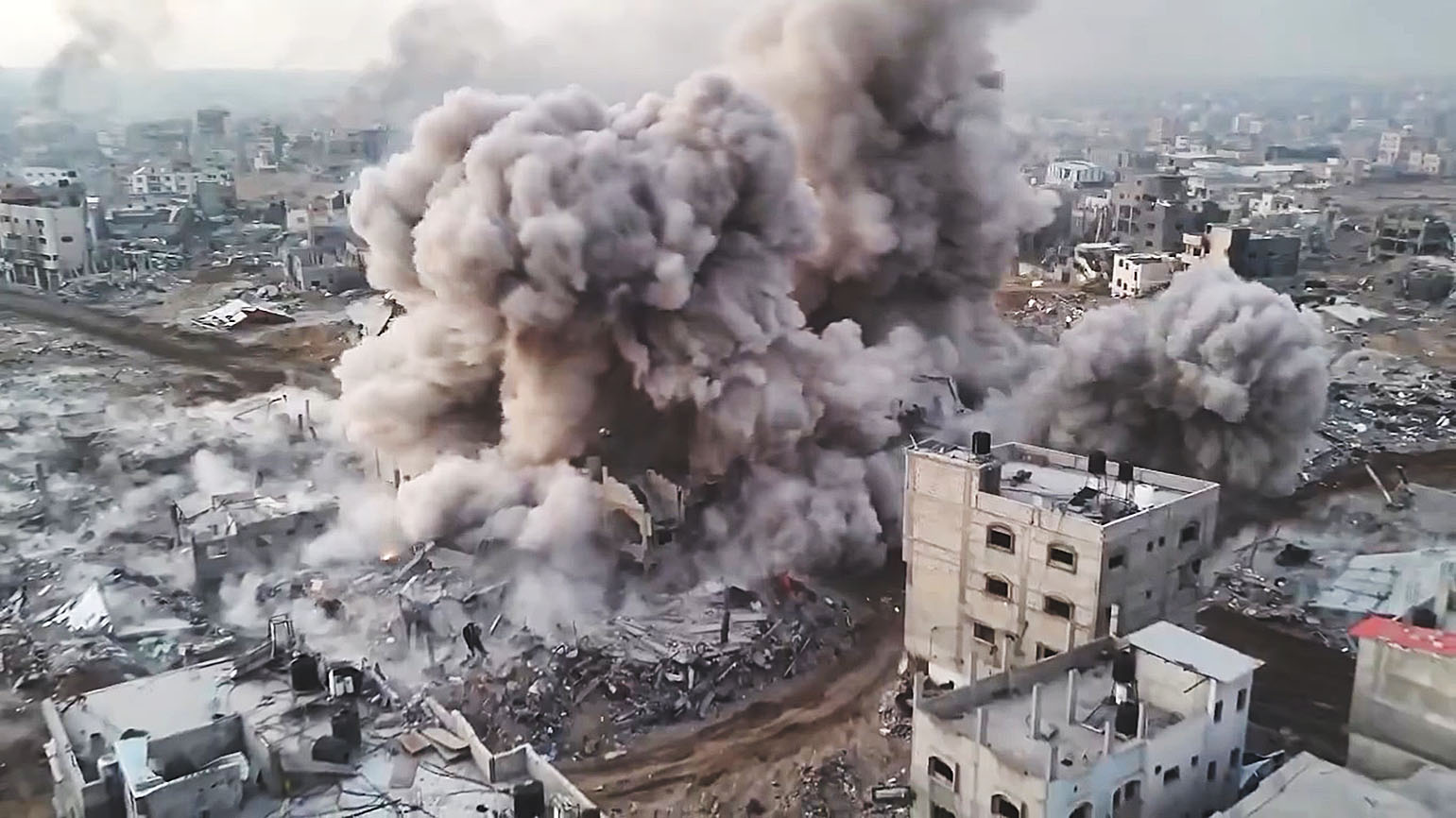 イスラエルの爆撃で壊滅したガザ地区中部ハーン・ユーニスの市街地(2月12日)