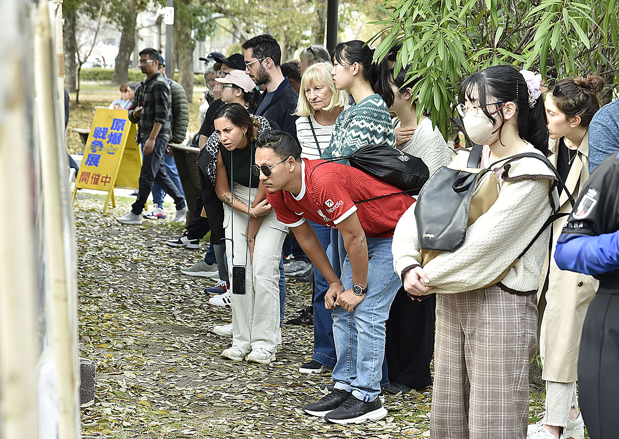 戦争止めるため学ぶ被爆地の経験 広島を訪れる外国人が急増 平和公園で「原爆と戦争展」 ガザの惨状重ね熱い論議に