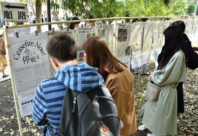 戦争止めるため学ぶ被爆地の経験 広島を訪れる外国人が急増 平和公園で「原爆と戦争展」 ガザの惨状重ね熱い論議に