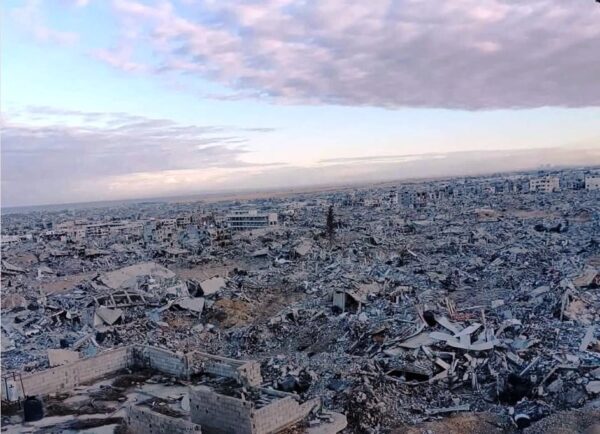 イスラエルの爆撃によって焦土と化したガザ地区南部ラファの街。ネタニヤフ首相は、この画像をXに投稿し、「アメリカ、EU、その他に感謝する。皆さんのサポートがなければ、ラファをこのような姿にすることはできなかっただろう」と戦果を誇示した。(2024年12月18日)