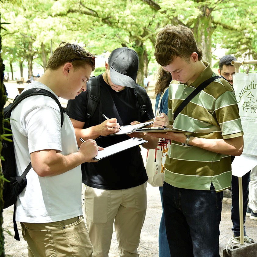 「民間人殺戮の兵器提供やめよ」 広島平和公園で「原爆と戦争展」実施 世界各地から被爆地を訪れる人々の鋭い意識