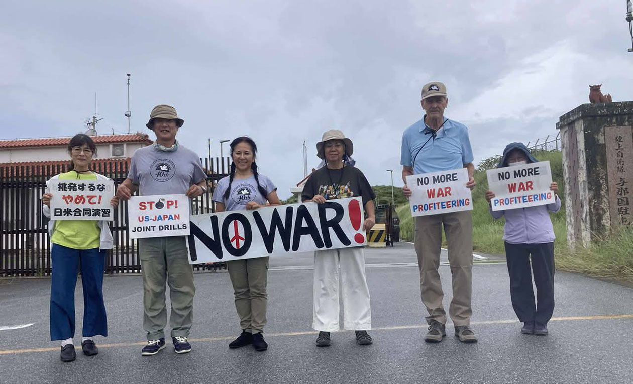来日ツアーで陸上自衛隊与那国駐屯地を視察したVFP来日メンバーと現地の人々(10月20日、沖縄県。VFP提供)