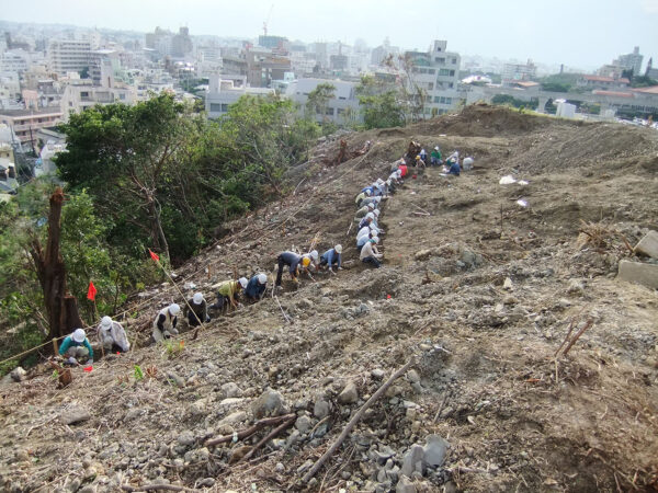 具志堅 結論からいうとその計画はある。アメリカ軍の記録のなかで、沖縄戦でわかっているだけでも177カ所に日本兵及び住民の遺体を埋めたとある。この記録を厚生労働省も入手しており、だいたいの場所もわかっているが、その範囲が30㍍四方ほどの広さがあるうえに、ほとんどの地域が開発されて残っていない。18カ所くらいは試掘してみたがなかったという。遺骨を探索するには、腐葉土をどけて当時の地層からさらに1㍍下まで掘らないといけない。30㍍四方を1㍍掘り下げるというのは、かなり大がかりなとりくみが必要になる。国がやると「やってみましたが見つかりませんでした」というアリバイ的なやり方しかしない。見つかっても見つからなくても戦死者に近づこうとする慰霊の事業なのだというスタンスでのとりくみが必要だ。