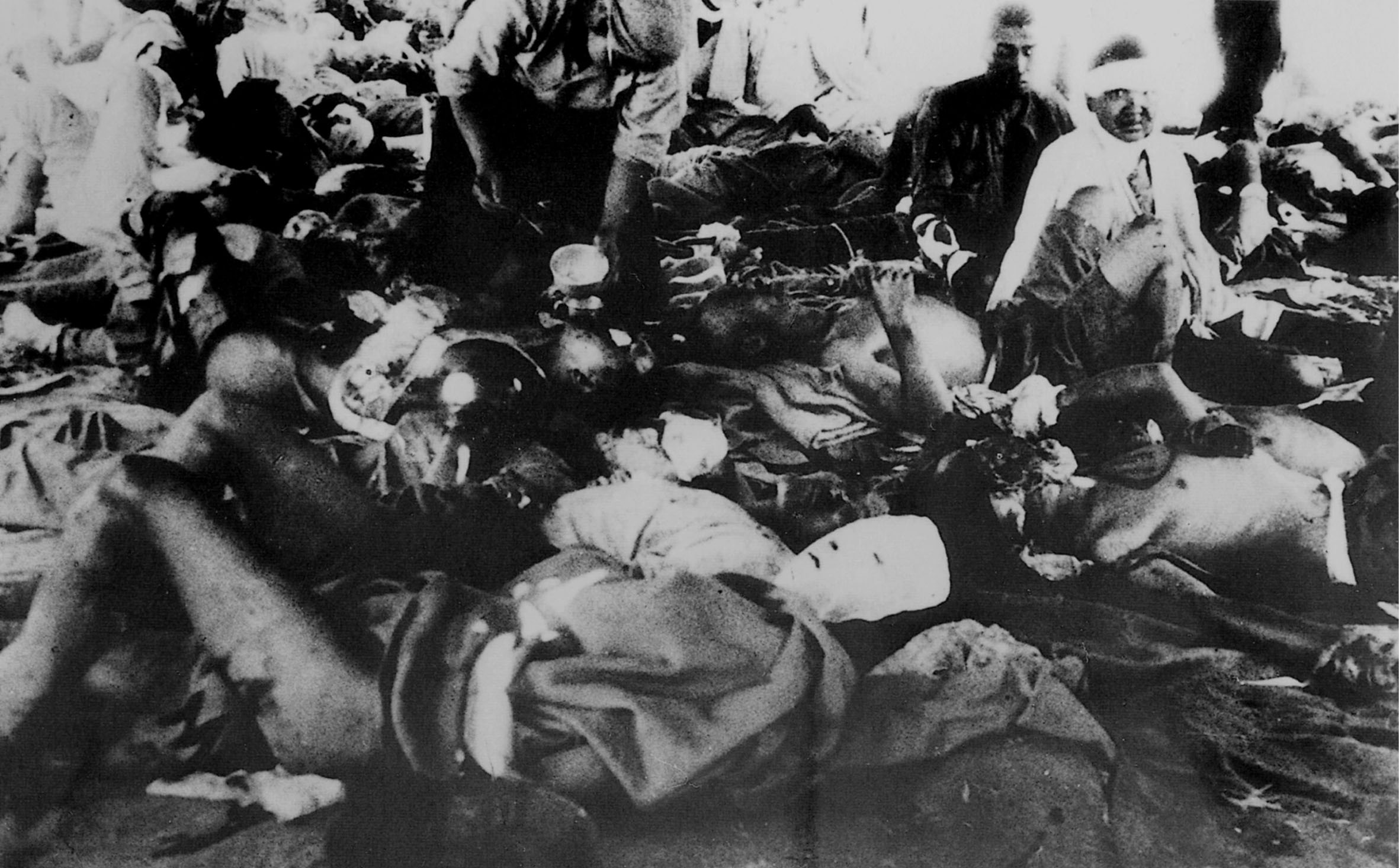 広島第2陸軍病院のテント内(川原四儀氏撮影)
