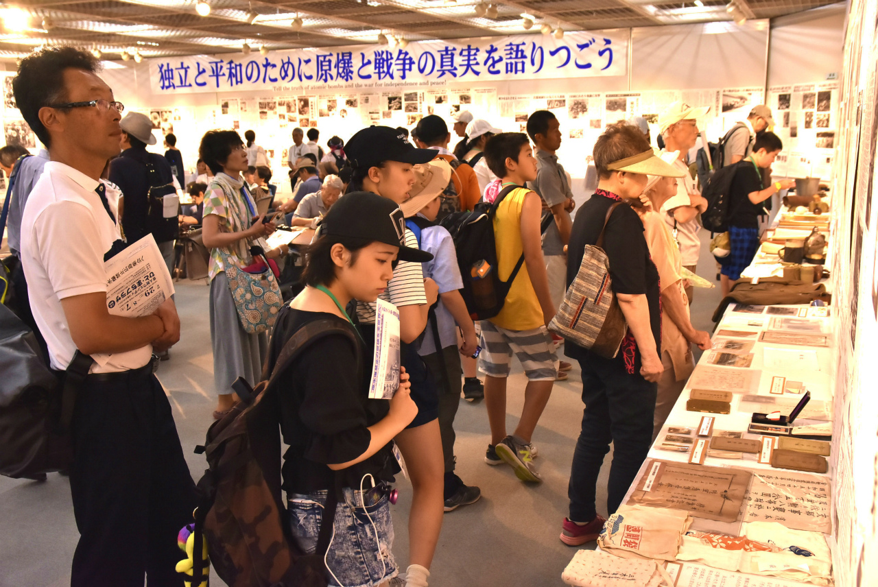 全国各地から若い世代が多く訪れた原爆と戦争展(6日、広島市)