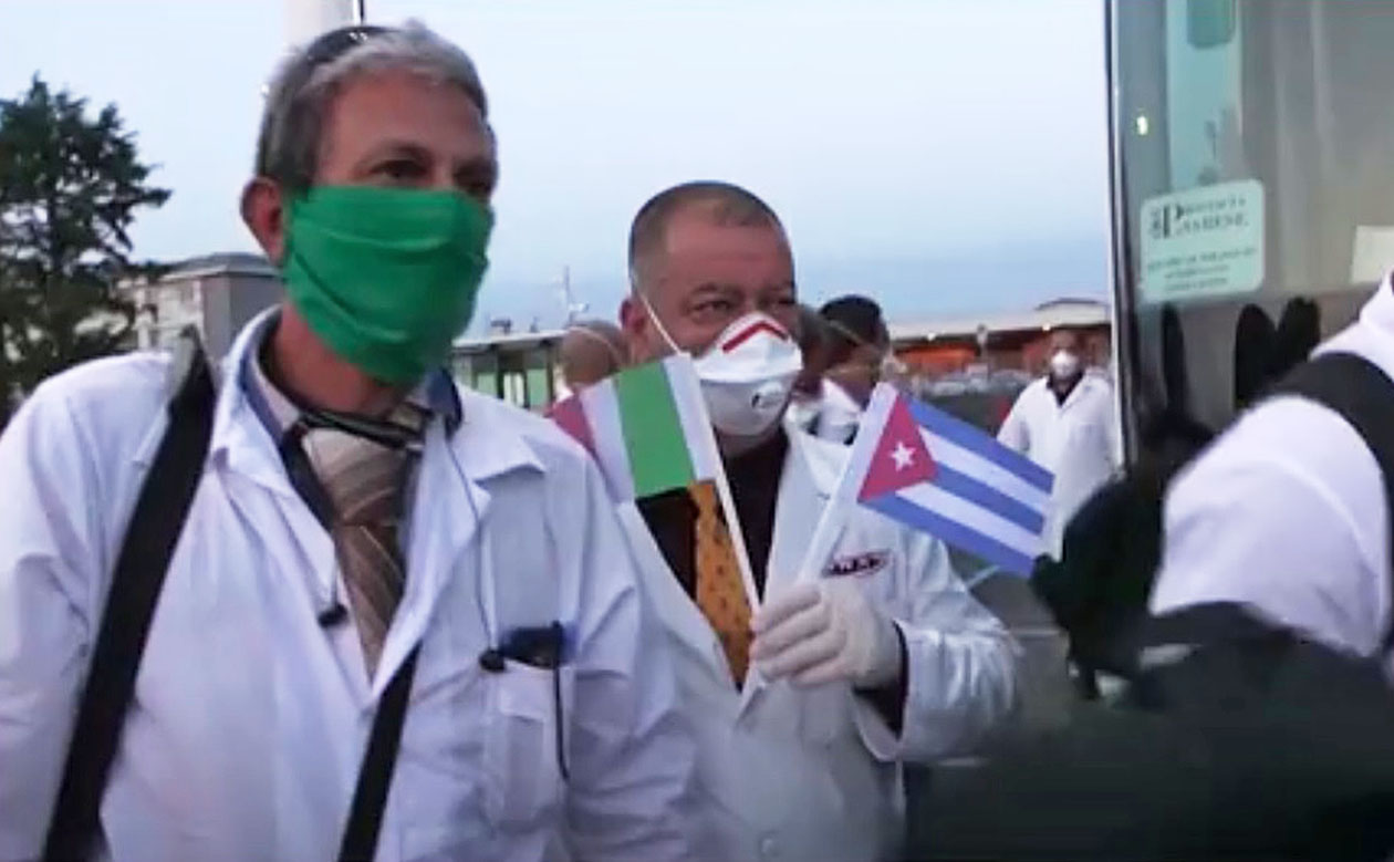 イタリア入りしたキューバの医師団(3月、ミラノ)