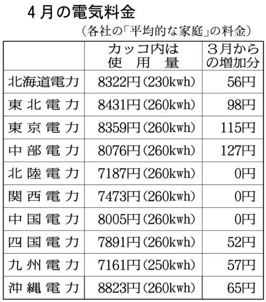 今回値上げしたのは7社だったが、北陸電力と関西電力、中国電力は3月分で料金に上乗せできる上限に達していたため値上げできなかっただけだ。大手電力会社の一斉値上げはこれで8カ月連続となった。すでに今年2月の電気料金は、電力会社によって金額は異なるが、「平均的な家庭」で1年前より785~1636円上がっている。