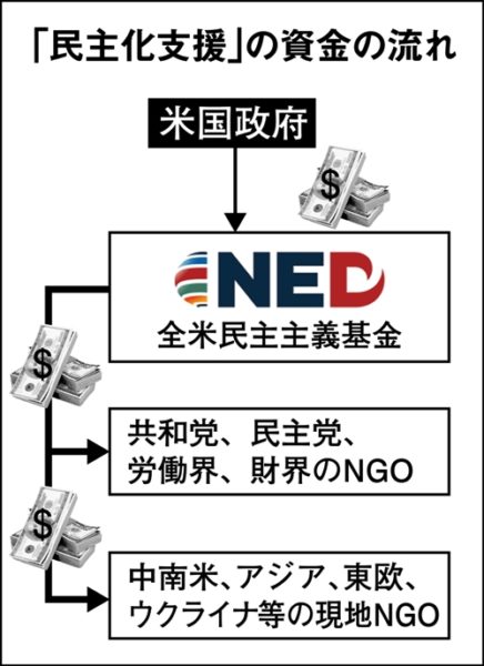 米国のNGO全米民主主義基金(NED)がウクライナにテコ入れしている2005年から、ちょうどアフガンでも同じことをやっていた。いわゆる「民主化支援」だ。当時、NHKが東欧やアラブの「カラー革命」(民主化を掲げた政権転覆運動)に資金を提供していたNEDの役割について特集番組を組み、ゲストとして招かれた僕はそこで次の様な指摘をした。
