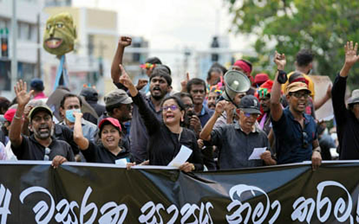 物価高騰に抗議し、大統領の辞任を求めるデモ(5日、スリランカ・コロンボ)