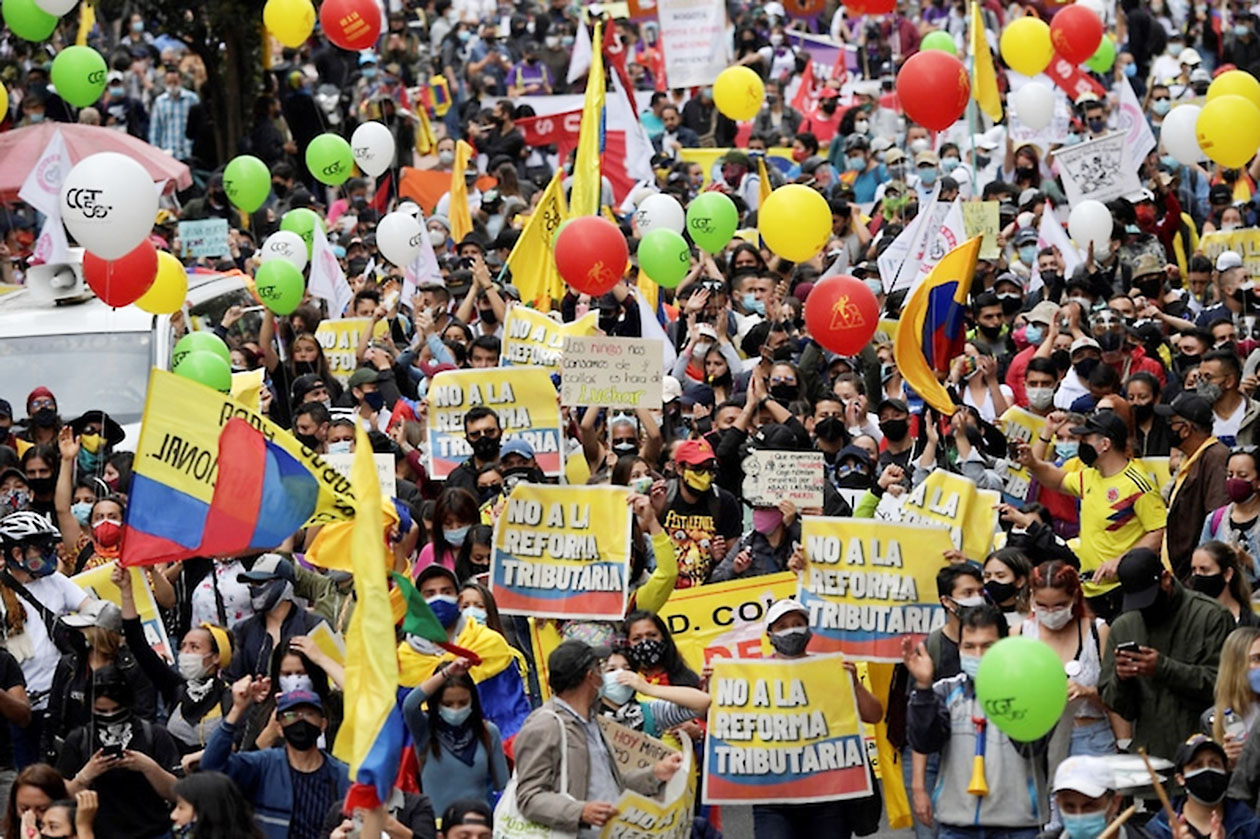 ドゥケ政府の増税案に反対する全国ストライキ(昨年4月、コロンビア)