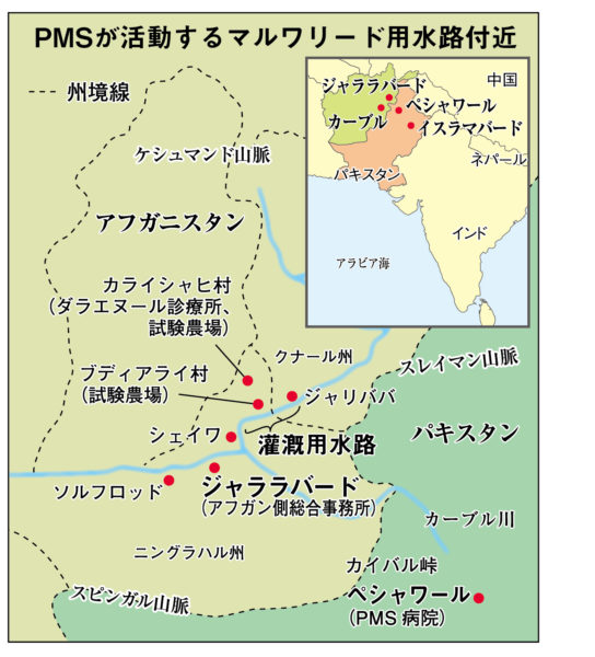 中村先生はどんな高いところ、どんな遠いところに診療所を開いても、そこに重い酸素ボンベを担いで行った。それは「呼吸困難に陥っている患者の不安感をまずとり除いてやらないといけない」という思いからだ。こうして15年活動をした1998年、ペシャワールに病床70床、オペ室も備えたPMS病院をつくり、活動拠点をここに置いた。