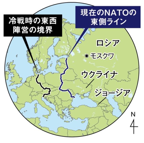 冷戦時の東西陣営の境界は、この30年で大きく東側に移動した【地図参照】。いわゆるNATOの東方拡大だ。ロシアの懐にまで入ってきたわけだ。「NATOは不拡大の約束を破っている」というのがプーチンの主張だが、日本の大部分の識者は「それは嘘だ。そんな約束などない」という。実際はどうか。1989年にベルリンの壁が崩壊したとき、ソ連のゴルバチョフ大統領はみずからペレストロイカを発動して民主化・自由化の道を選んだ。この西側にとって都合のいい大統領を守るための会合が盛んに開かれ、そこで話し合われた内容が公電に記録されている。日本のように公文書をすぐに廃棄するようなことはアメリカではない。政府の公文書は、秘密文書であっても国民の財産であるという考え方がある。秘密文書なのですぐには公開されないが、一定期間が経過すれば開示される。