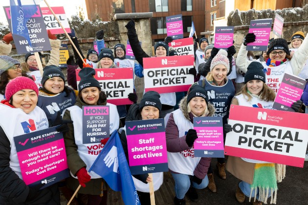 イギリス国内でストライキをおこなう看護師たち(昨年12月15日)