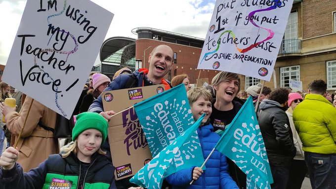 イギリス 教員や公務員等50万人がスト 医療、鉄道、救急、郵便、消防の動きに呼応 「賃金上げ、生活と公共サービスを守れ!」