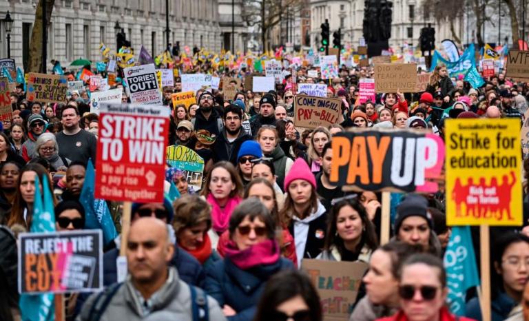 イギリス 教員や公務員等50万人がスト 医療、鉄道、救急、郵便、消防の動きに呼応 「賃金上げ、生活と公共サービスを守れ!」