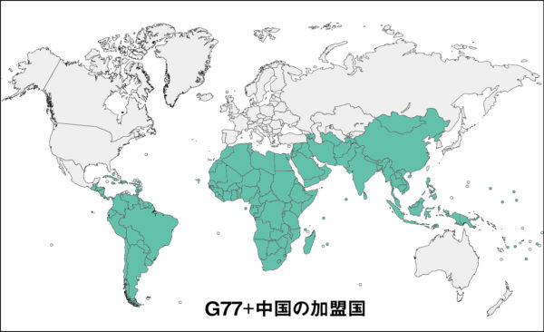 G77は1964年に発足し、現在は134の国と地域が加盟している。キューバのディアス・カネル大統領は、このグループが国連メンバーの3分の2と世界人口の80%を代表すると強調し、国際的な問題を解決するうえで不可欠の存在感を示した。