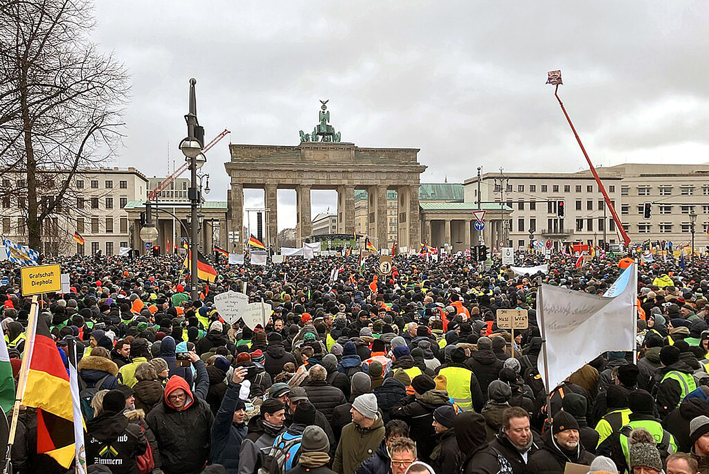 ブランデンブルグ門前での抗議行動(1月15日、ベルリン)
