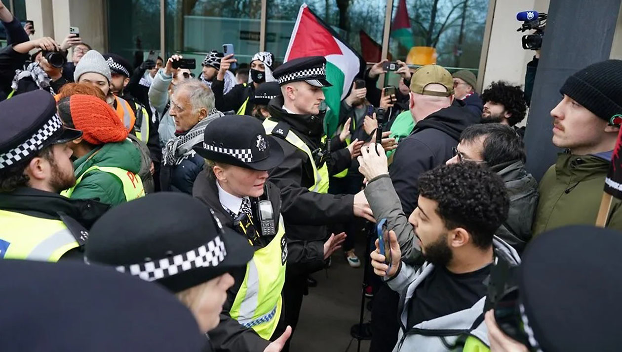 「治安維持」のため、1500人もの警官が動員された(17日、イギリス・ロンドン)